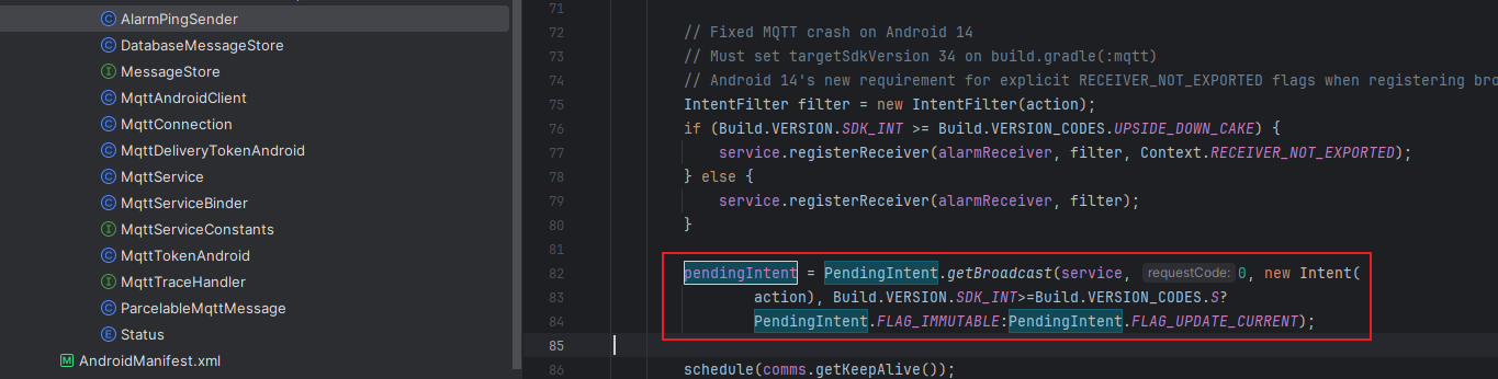 Targeting S+ (version 31 and above) requires that one of FLAG_IMMUTABLE or FLAG_MUTABLE be specified when creating a PendingIntent. Strongly consider using FLAG_IMMUTABLE, only use FLAG_MUTABLE if some functionality depends on the PendingIntent being mutable, e.g. if it needs to be used with inline replies or bubbles.